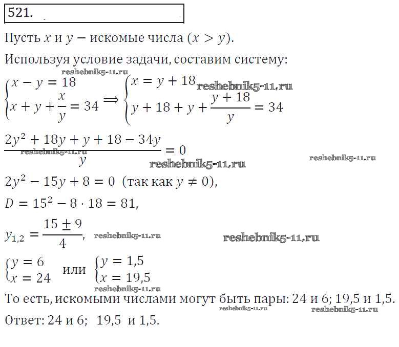 Готовая домашняя работа с ответами по Алгебре за 8 класс Колягин, Ткачева, Федорова, Шабунин Учебник УМК Просвещение 2013 ФГОС - Упражнения 521