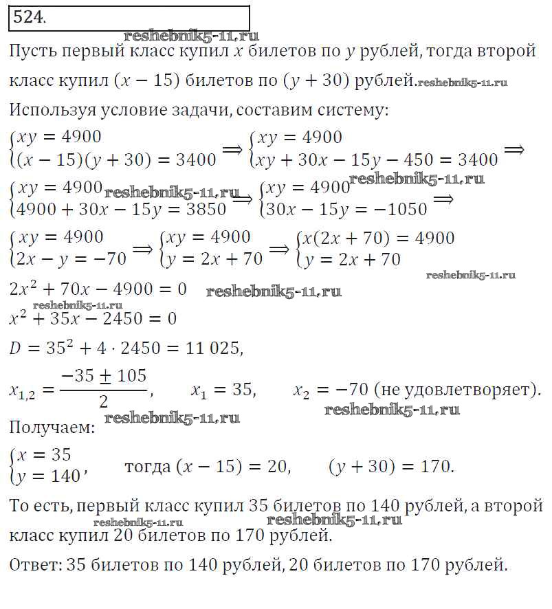 Готовая домашняя работа с ответами по Алгебре за 8 класс Колягин, Ткачева, Федорова, Шабунин Учебник УМК Просвещение 2013 ФГОС - Упражнения 524