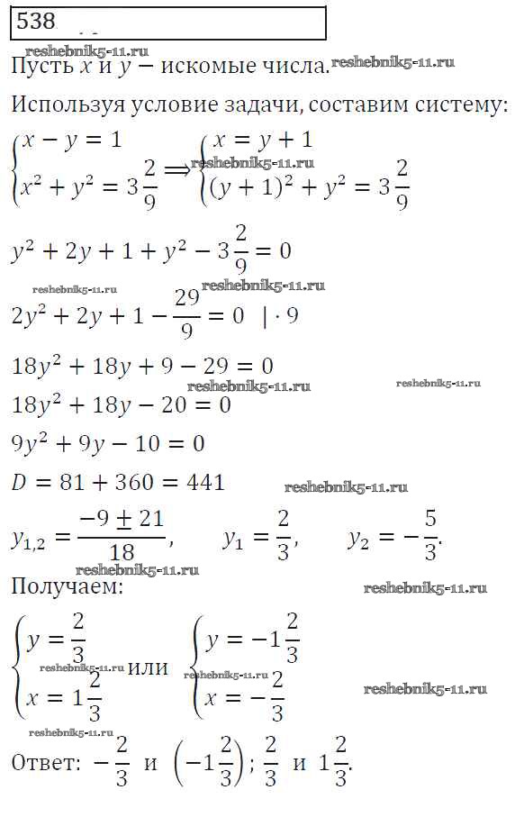 Готовая домашняя работа с ответами по Алгебре за 8 класс Колягин, Ткачева, Федорова, Шабунин Учебник УМК Просвещение 2013 ФГОС - Упражнения 538