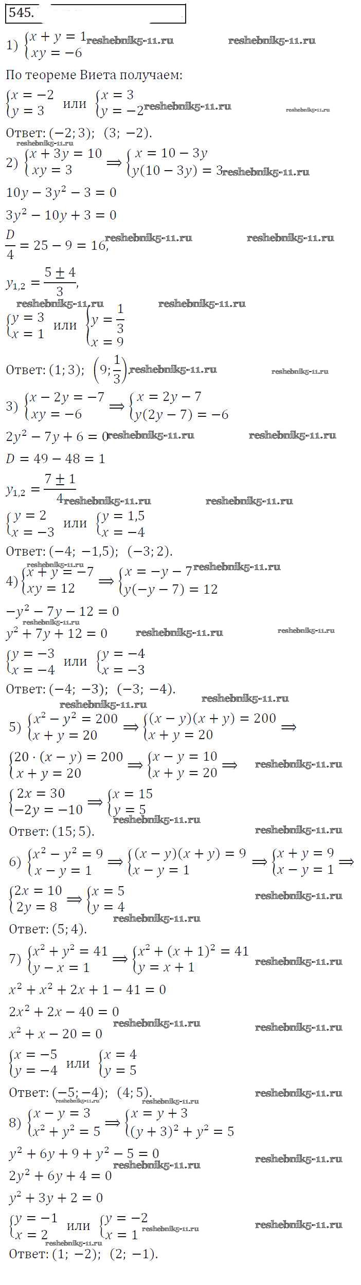 Готовая домашняя работа с ответами по Алгебре за 8 класс Колягин, Ткачева, Федорова, Шабунин Учебник УМК Просвещение 2013 ФГОС - Упражнения 545
