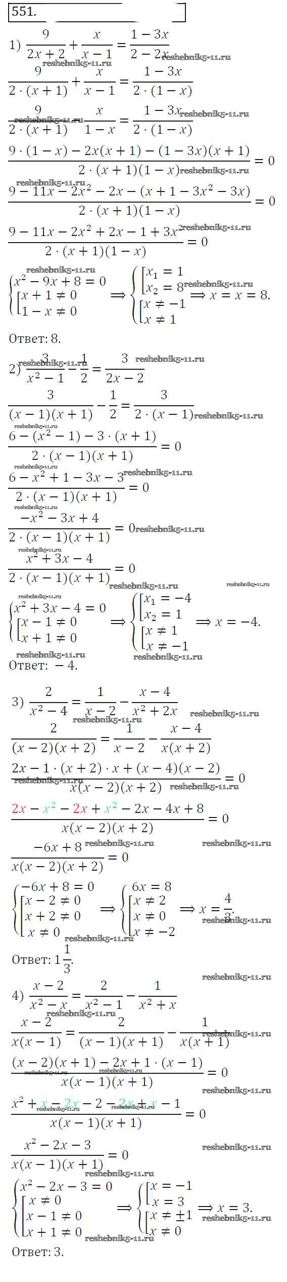 Готовая домашняя работа с ответами по Алгебре за 8 класс Колягин, Ткачева, Федорова, Шабунин Учебник УМК Просвещение 2013 ФГОС - Упражнения 551