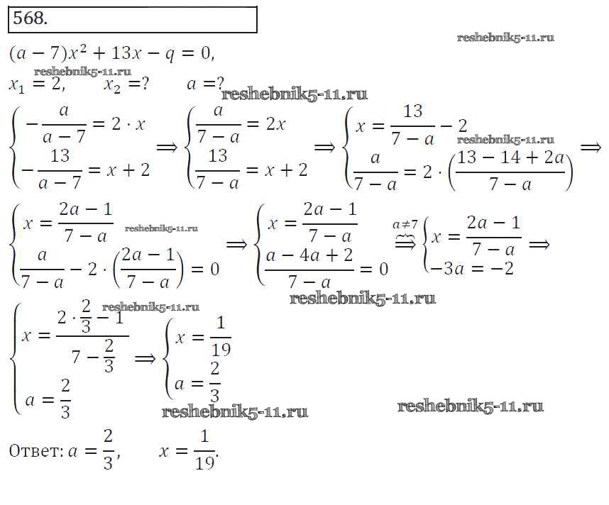 Готовая домашняя работа с ответами по Алгебре за 8 класс Колягин, Ткачева, Федорова, Шабунин Учебник УМК Просвещение 2013 ФГОС - Упражнения 568