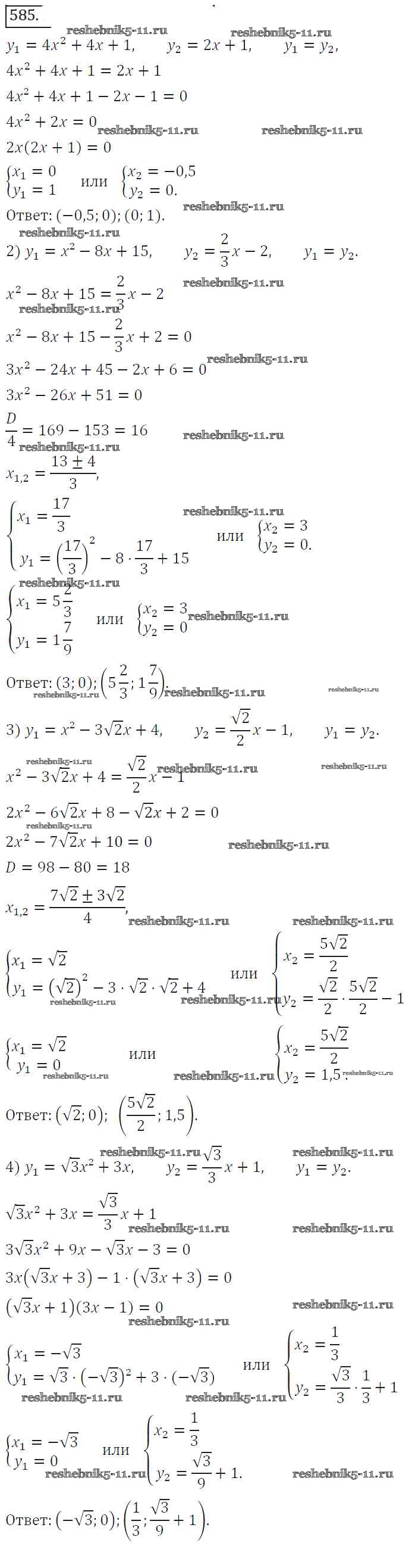Готовая домашняя работа с ответами по Алгебре за 8 класс Колягин, Ткачева, Федорова, Шабунин Учебник УМК Просвещение 2013 ФГОС - Упражнения 585
