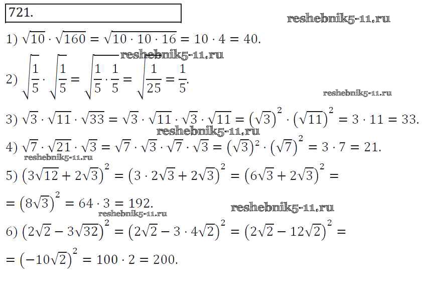 Готовая домашняя работа с ответами по Алгебре за 8 класс Колягин, Ткачева, Федорова, Шабунин Учебник УМК Просвещение 2013 ФГОС - Упражнения 721