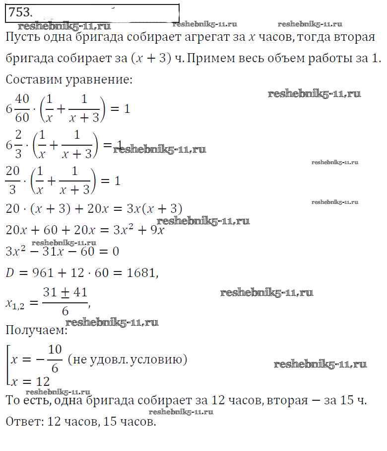 Готовая домашняя работа с ответами по Алгебре за 8 класс Колягин, Ткачева, Федорова, Шабунин Учебник УМК Просвещение 2013 ФГОС - Упражнения 753