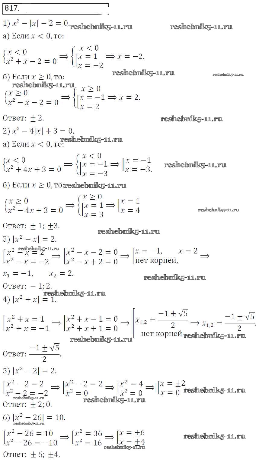 Готовая домашняя работа с ответами по Алгебре за 8 класс Колягин, Ткачева, Федорова, Шабунин Учебник УМК Просвещение 2013 ФГОС - Упражнения 817