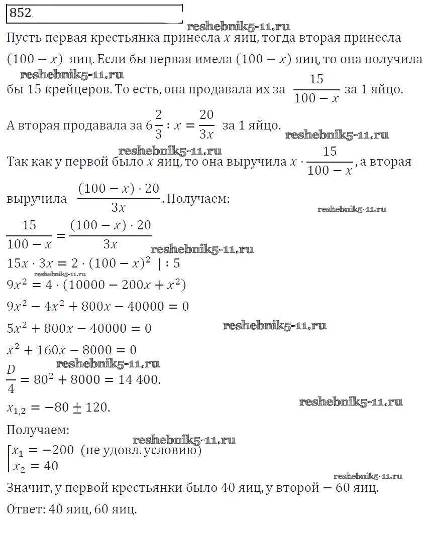 Готовая домашняя работа с ответами по Алгебре за 8 класс Колягин, Ткачева, Федорова, Шабунин Учебник УМК Просвещение 2013 ФГОС - Упражнения 852