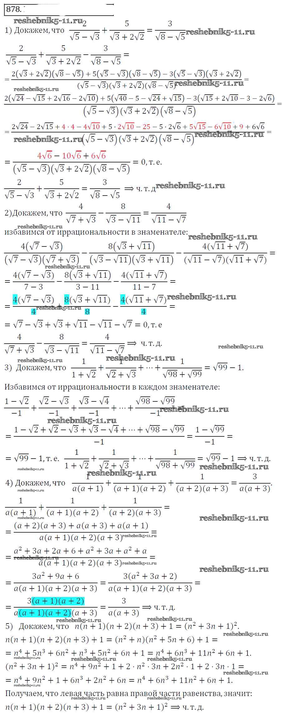 Готовая домашняя работа с ответами по Алгебре за 8 класс Колягин, Ткачева, Федорова, Шабунин Учебник УМК Просвещение 2013 ФГОС - Упражнения 878