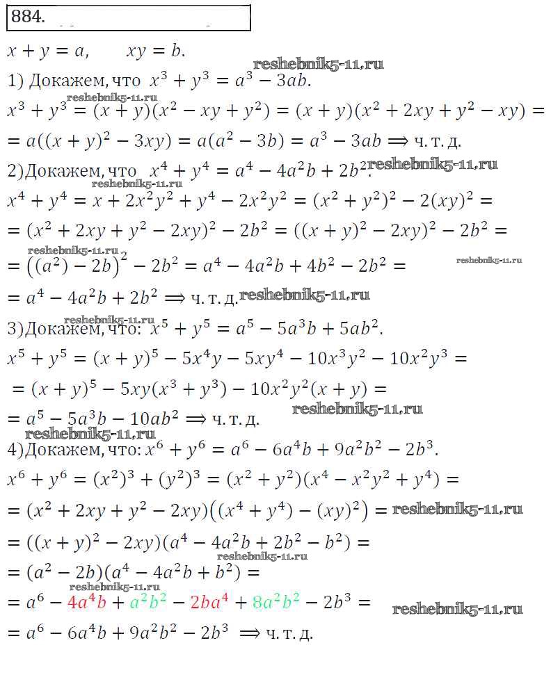 Готовая домашняя работа с ответами по Алгебре за 8 класс Колягин, Ткачева, Федорова, Шабунин Учебник УМК Просвещение 2013 ФГОС - Упражнения 884