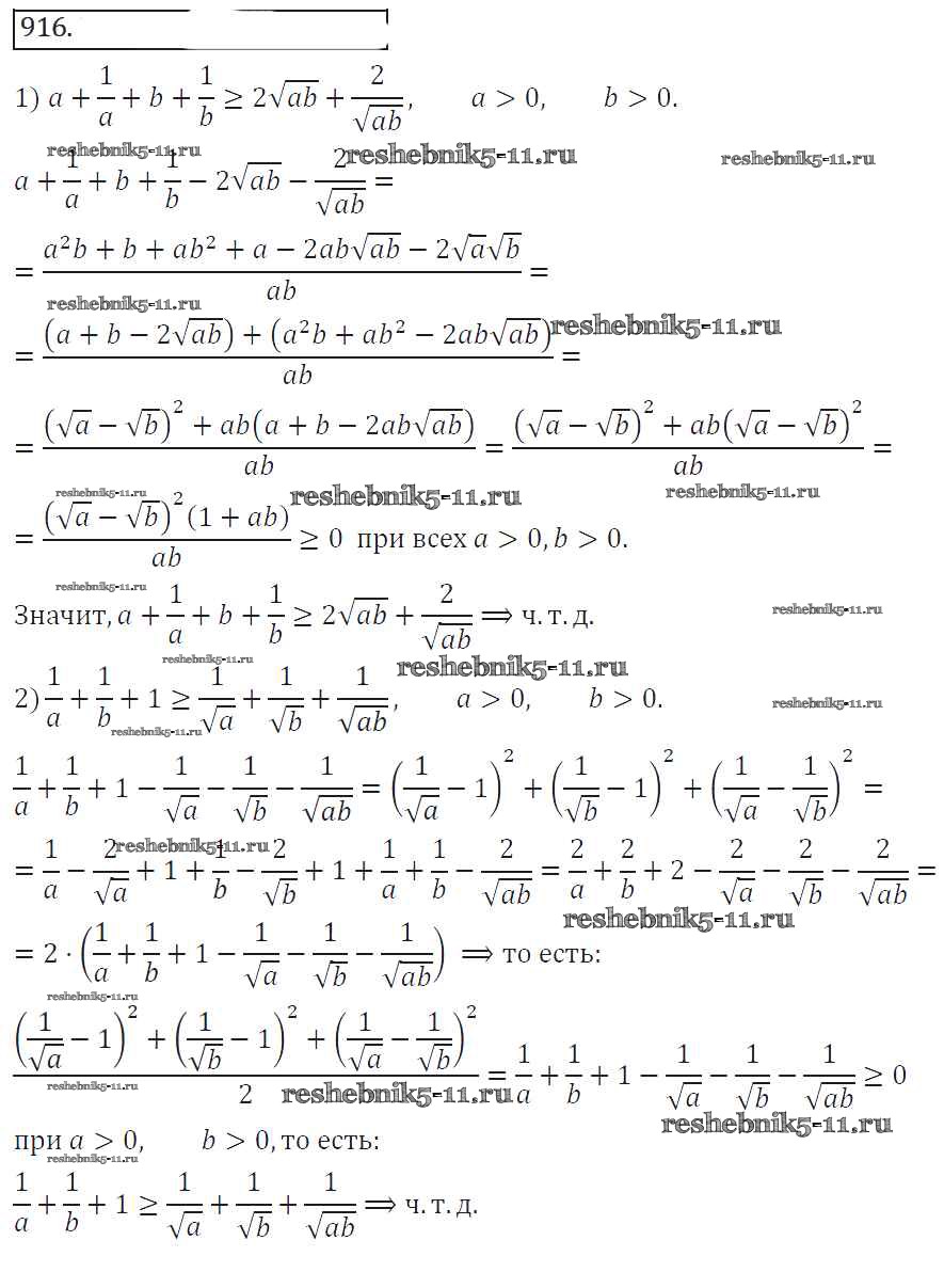 Готовая домашняя работа с ответами по Алгебре за 8 класс Колягин, Ткачева, Федорова, Шабунин Учебник УМК Просвещение 2013 ФГОС - Упражнения 916