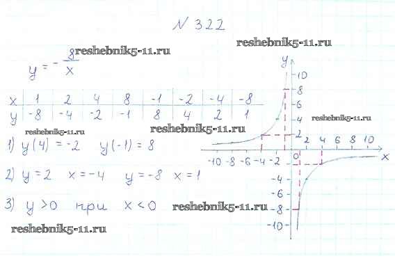 Готовая домашняя работа с ответами по Алгебре за 8 класс Мерзляк, Полонский, Якир Учебник Алгоритм успеха Вентана-граф 2016 ФГОС - §10. Функция. y=k/x и её график 322