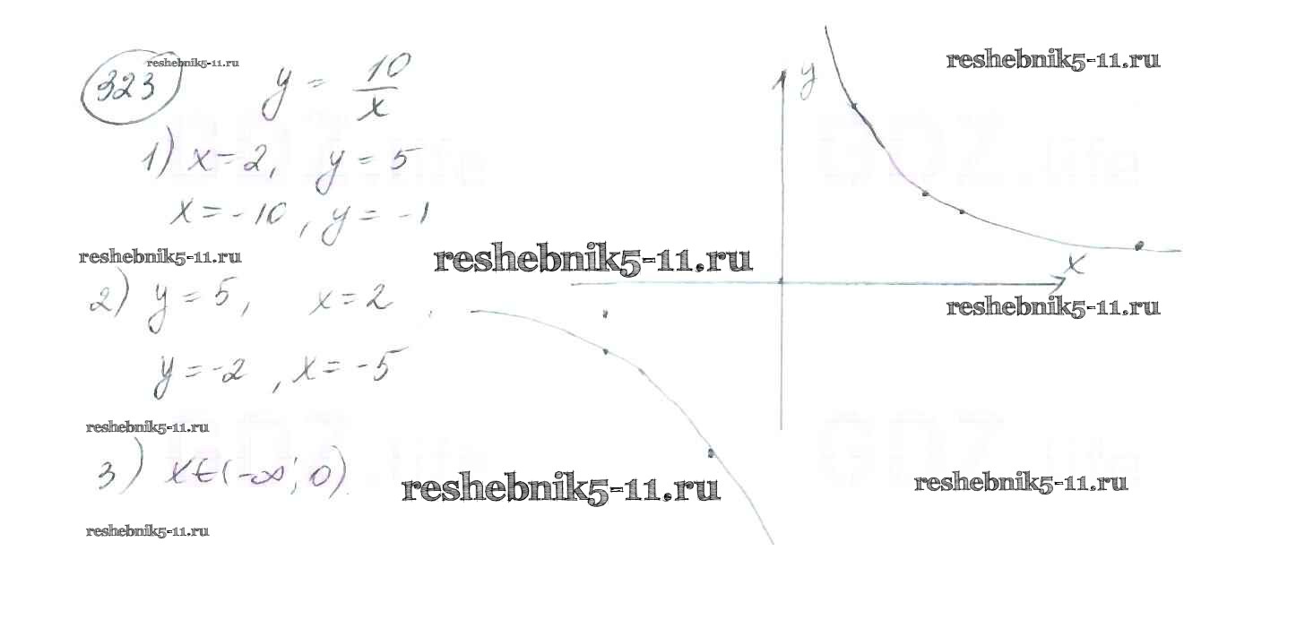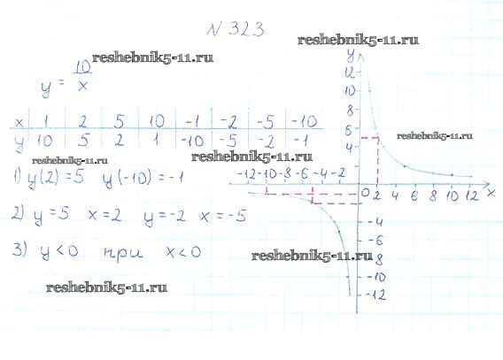 Готовая домашняя работа с ответами по Алгебре за 8 класс Мерзляк, Полонский, Якир Учебник Алгоритм успеха Вентана-граф 2016 ФГОС - §10. Функция. y=k/x и её график 323