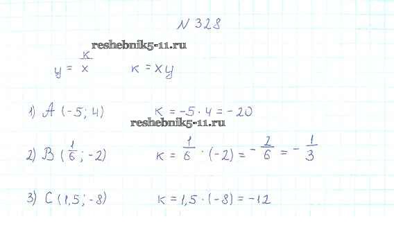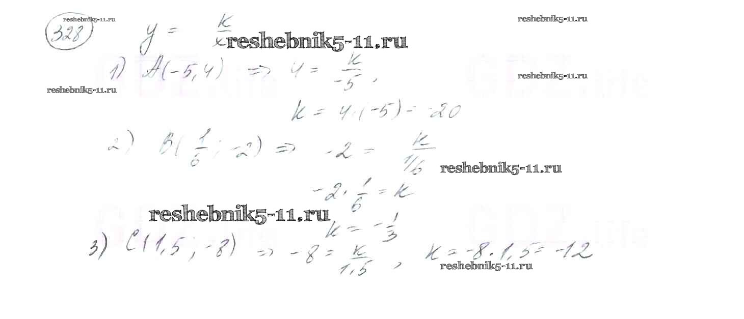 Готовая домашняя работа с ответами по Алгебре за 8 класс Мерзляк, Полонский, Якир Учебник Алгоритм успеха Вентана-граф 2016 ФГОС - §10. Функция. y=k/x и её график 328
