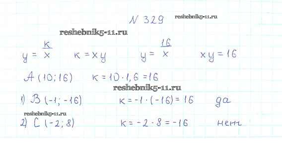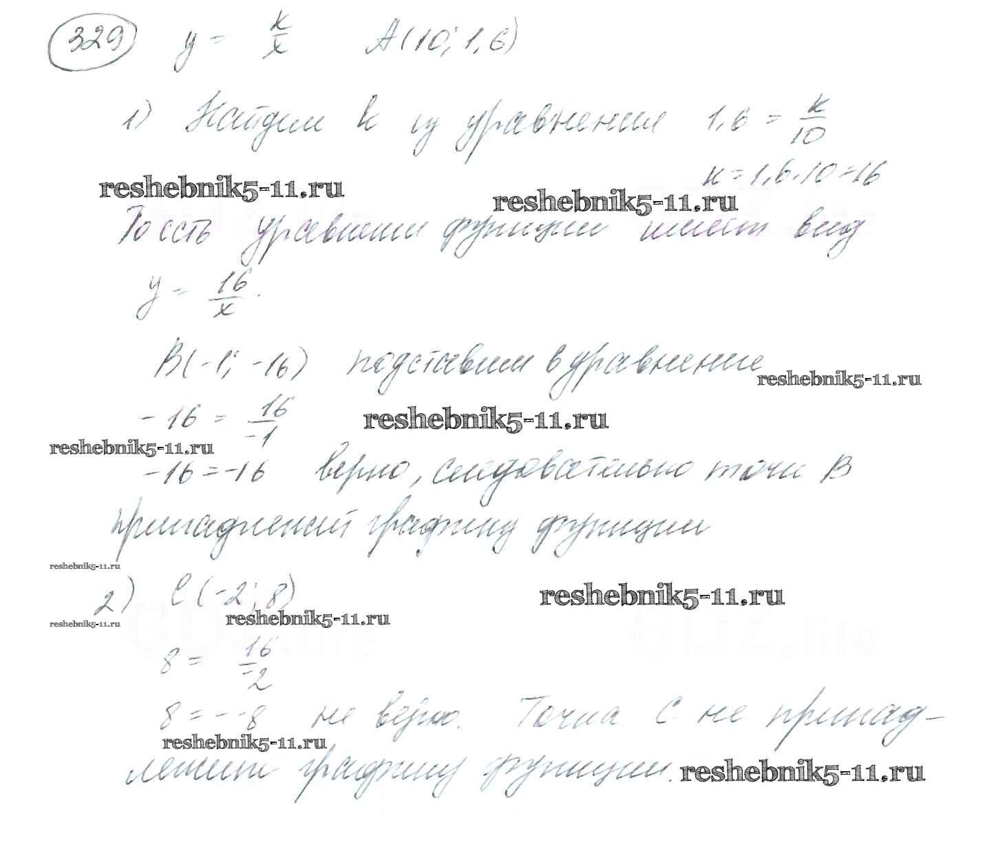 Готовая домашняя работа с ответами по Алгебре за 8 класс Мерзляк, Полонский, Якир Учебник Алгоритм успеха Вентана-граф 2016 ФГОС - §10. Функция. y=k/x и её график 329