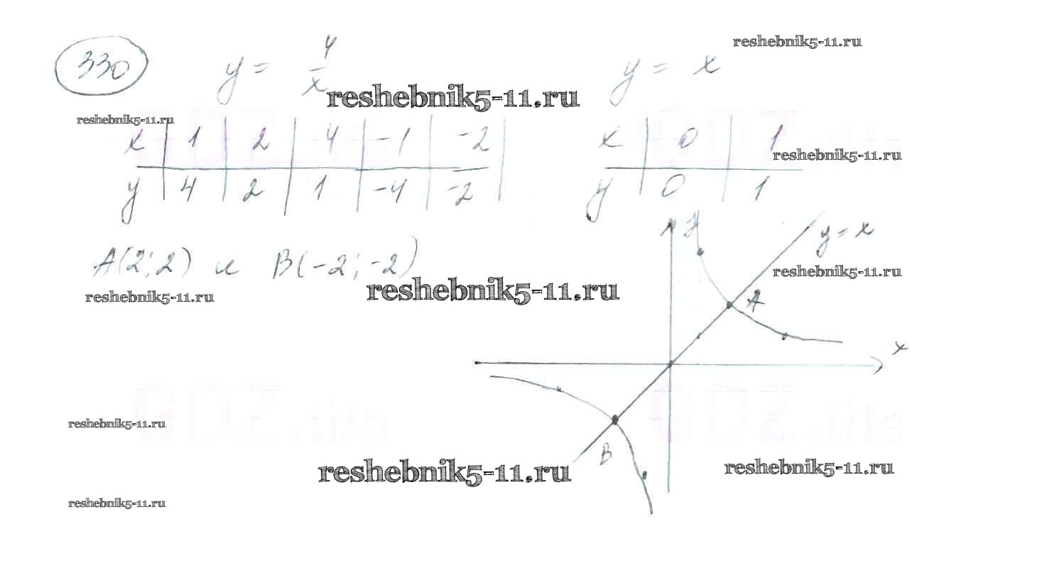 Готовая домашняя работа с ответами по Алгебре за 8 класс Мерзляк, Полонский, Якир Учебник Алгоритм успеха Вентана-граф 2016 ФГОС - §10. Функция. y=k/x и её график 330