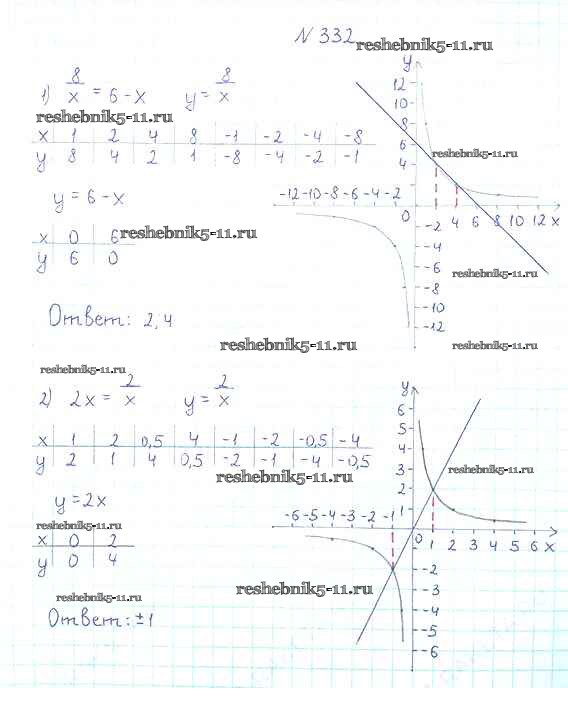Готовая домашняя работа с ответами по Алгебре за 8 класс Мерзляк, Полонский, Якир Учебник Алгоритм успеха Вентана-граф 2016 ФГОС - §10. Функция. y=k/x и её график 332