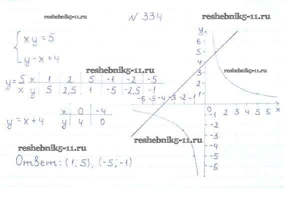 Готовая домашняя работа с ответами по Алгебре за 8 класс Мерзляк, Полонский, Якир Учебник Алгоритм успеха Вентана-граф 2016 ФГОС - §10. Функция. y=k/x и её график 334