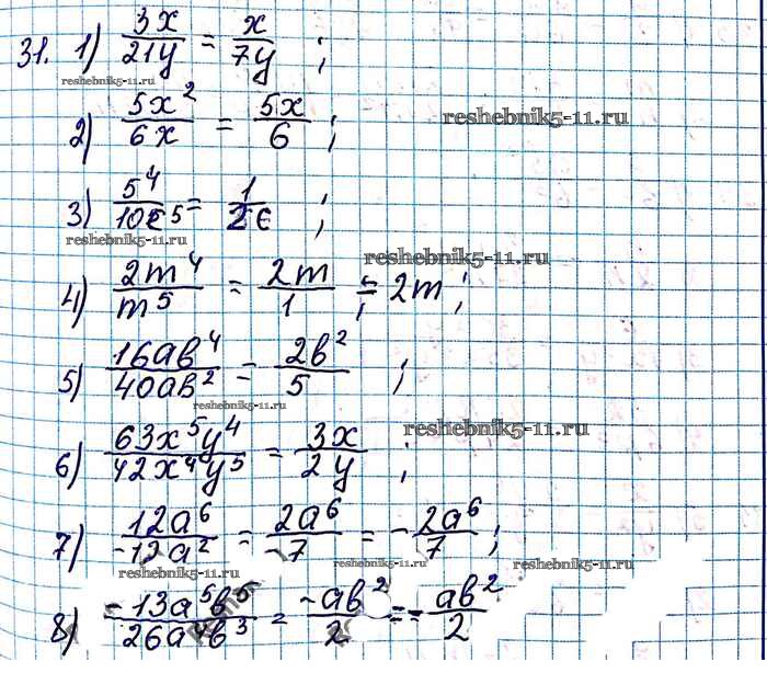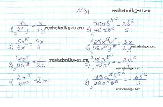 Готовая домашняя работа с ответами по Алгебре за 8 класс Мерзляк, Полонский, Якир Учебник Алгоритм успеха Вентана-граф 2016 ФГОС - §2. Основное свойство рациональной дроби 31