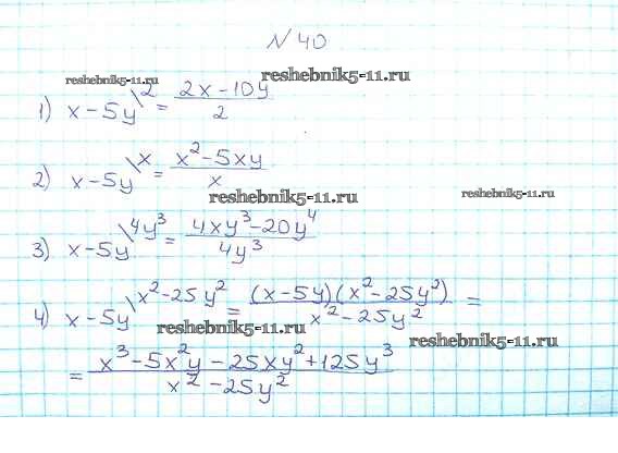 Готовая домашняя работа с ответами по Алгебре за 8 класс Мерзляк, Полонский, Якир Учебник Алгоритм успеха Вентана-граф 2016 ФГОС - §2. Основное свойство рациональной дроби 40