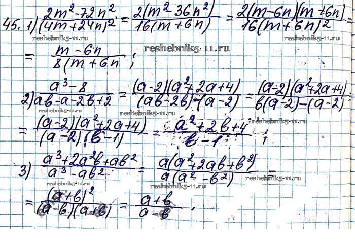 Готовая домашняя работа с ответами по Алгебре за 8 класс Мерзляк, Полонский, Якир Учебник Алгоритм успеха Вентана-граф 2016 ФГОС - §2. Основное свойство рациональной дроби 45