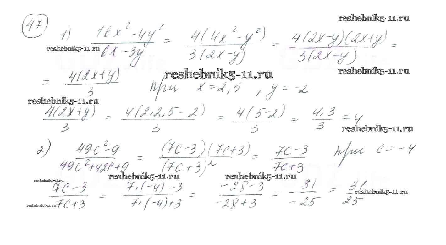 Готовая домашняя работа с ответами по Алгебре за 8 класс Мерзляк, Полонский, Якир Учебник Алгоритм успеха Вентана-граф 2016 ФГОС - §2. Основное свойство рациональной дроби 47