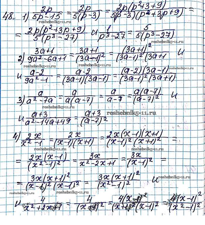 Готовая домашняя работа с ответами по Алгебре за 8 класс Мерзляк, Полонский, Якир Учебник Алгоритм успеха Вентана-граф 2016 ФГОС - §2. Основное свойство рациональной дроби 48