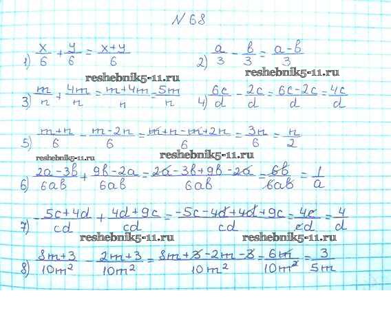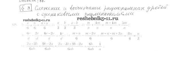 Готовая домашняя работа с ответами по Алгебре за 8 класс Мерзляк, Полонский, Якир Учебник Алгоритм успеха Вентана-граф 2016 ФГОС - §3. Сложение и вычитание рациональных дробей с одинаковыми знаменателями 68