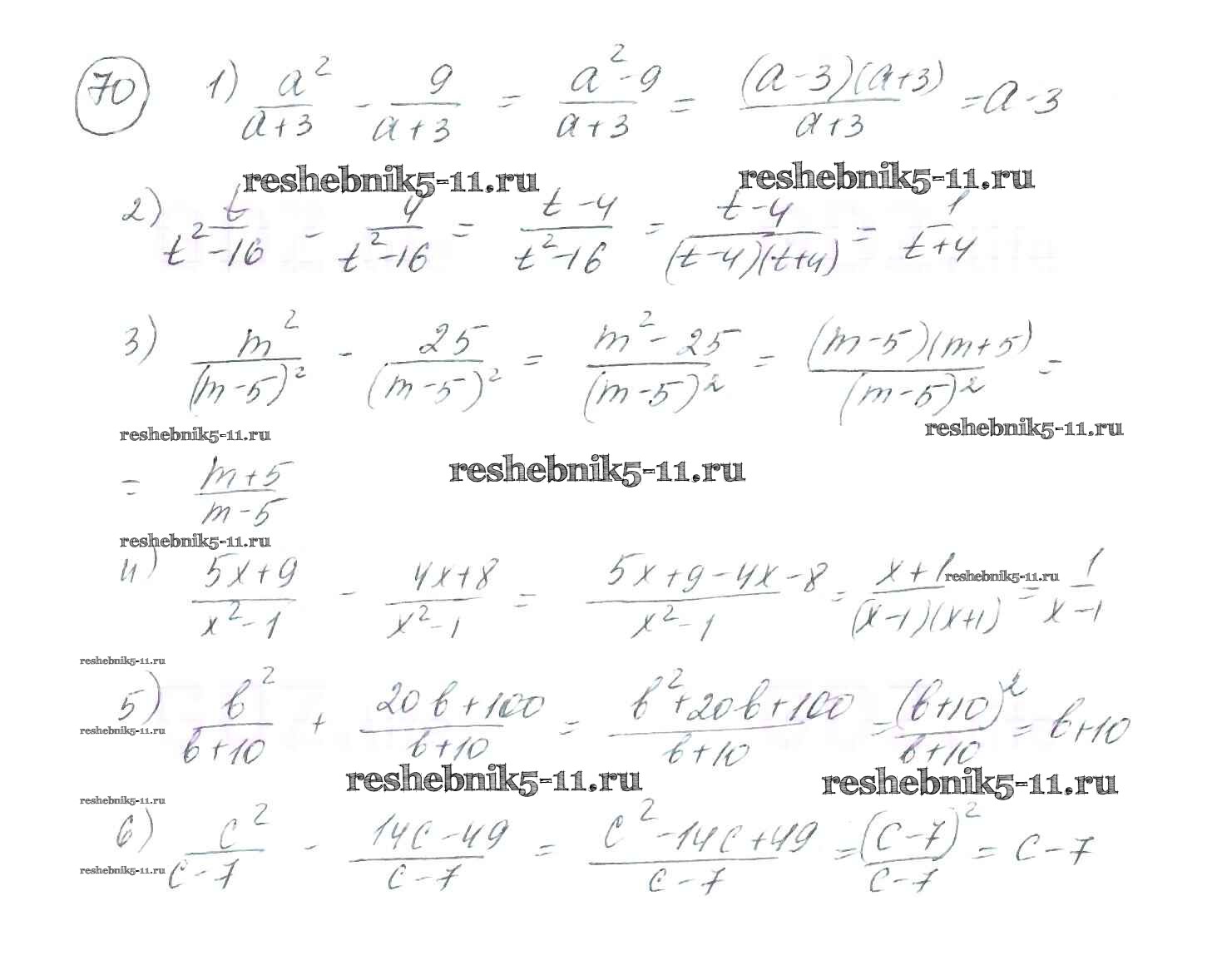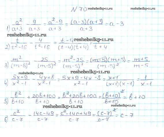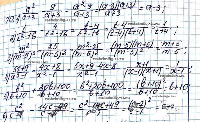 Готовая домашняя работа с ответами по Алгебре за 8 класс Мерзляк, Полонский, Якир Учебник Алгоритм успеха Вентана-граф 2016 ФГОС - §3. Сложение и вычитание рациональных дробей с одинаковыми знаменателями 70