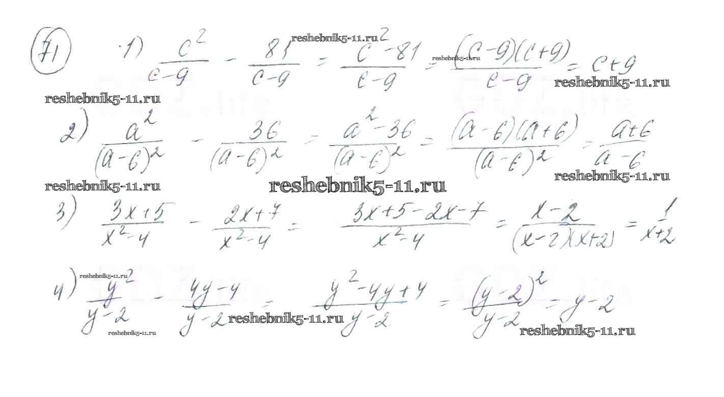 Готовая домашняя работа с ответами по Алгебре за 8 класс Мерзляк, Полонский, Якир Учебник Алгоритм успеха Вентана-граф 2016 ФГОС - §3. Сложение и вычитание рациональных дробей с одинаковыми знаменателями 71