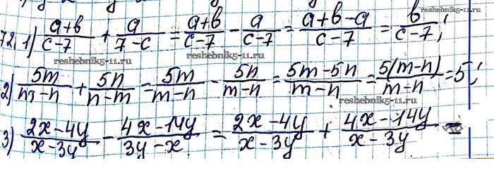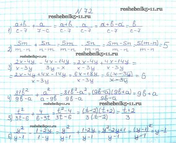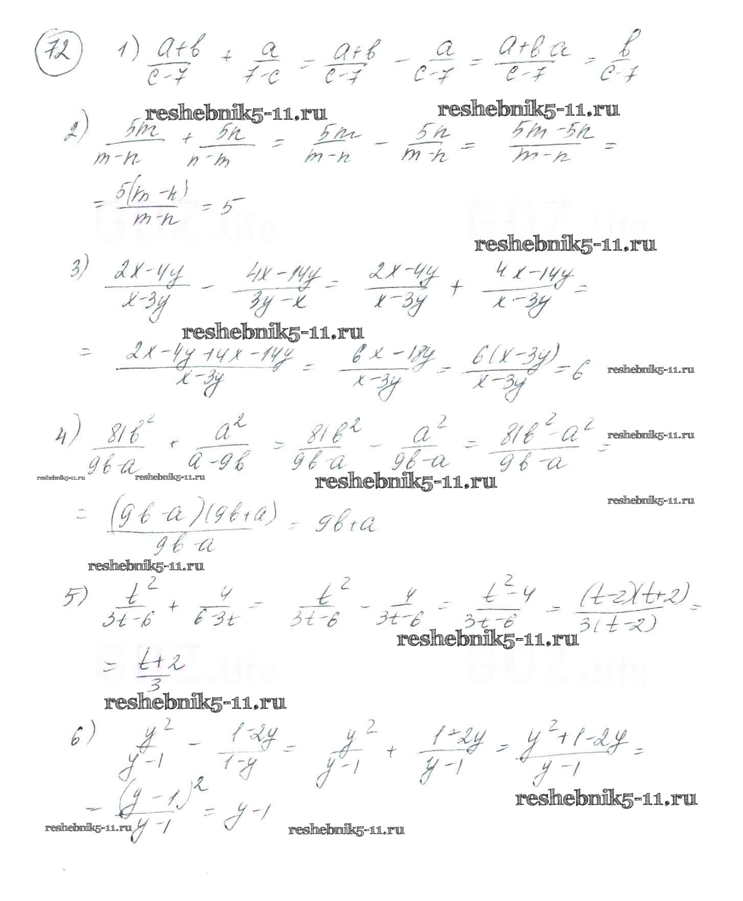 Готовая домашняя работа с ответами по Алгебре за 8 класс Мерзляк, Полонский, Якир Учебник Алгоритм успеха Вентана-граф 2016 ФГОС - §3. Сложение и вычитание рациональных дробей с одинаковыми знаменателями 72