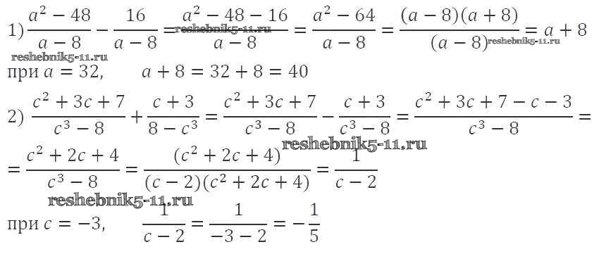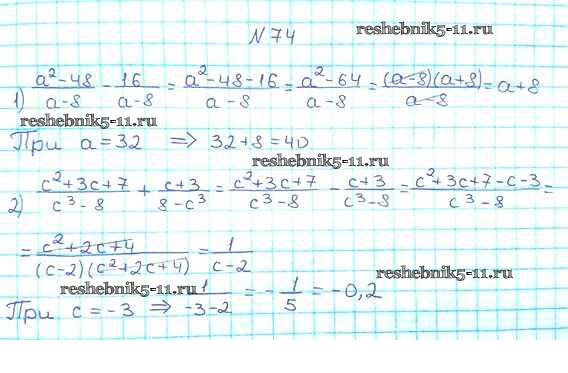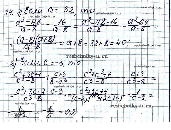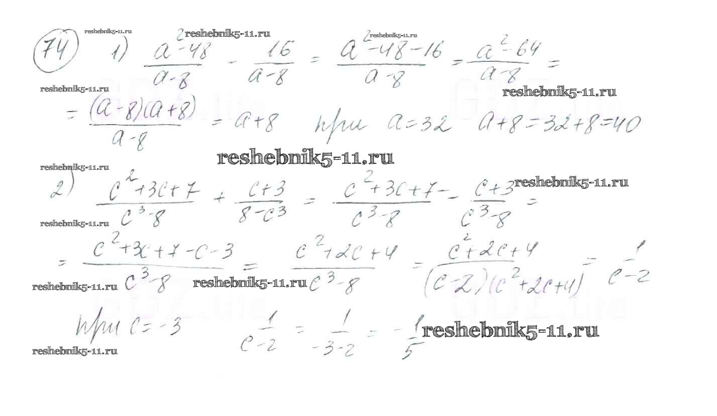 Готовая домашняя работа с ответами по Алгебре за 8 класс Мерзляк, Полонский, Якир Учебник Алгоритм успеха Вентана-граф 2016 ФГОС - §3. Сложение и вычитание рациональных дробей с одинаковыми знаменателями 74
