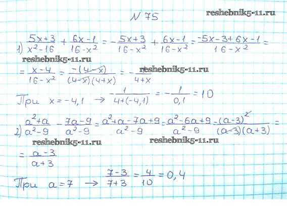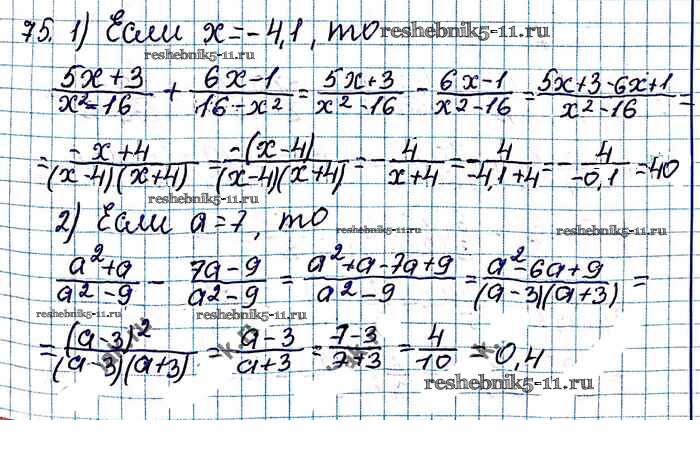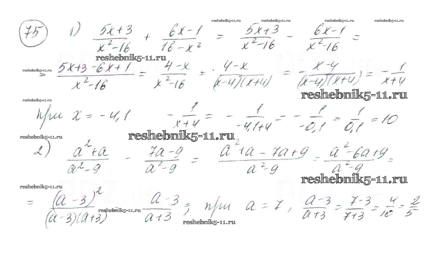 Готовая домашняя работа с ответами по Алгебре за 8 класс Мерзляк, Полонский, Якир Учебник Алгоритм успеха Вентана-граф 2016 ФГОС - §3. Сложение и вычитание рациональных дробей с одинаковыми знаменателями 75