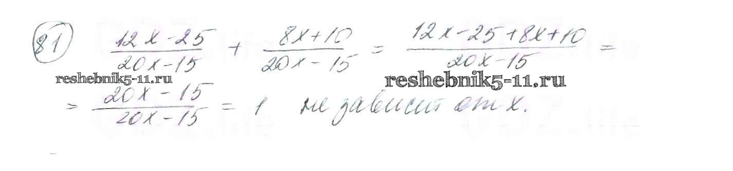 Готовая домашняя работа с ответами по Алгебре за 8 класс Мерзляк, Полонский, Якир Учебник Алгоритм успеха Вентана-граф 2016 ФГОС - §3. Сложение и вычитание рациональных дробей с одинаковыми знаменателями 81