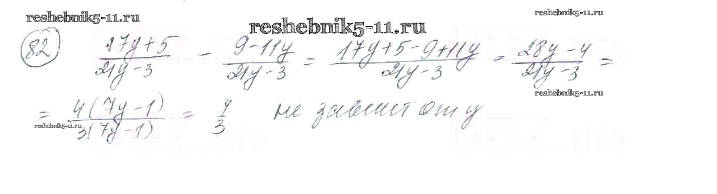 Готовая домашняя работа с ответами по Алгебре за 8 класс Мерзляк, Полонский, Якир Учебник Алгоритм успеха Вентана-граф 2016 ФГОС - §3. Сложение и вычитание рациональных дробей с одинаковыми знаменателями 82