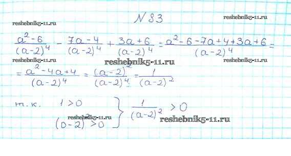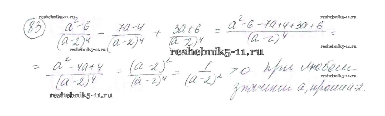 Готовая домашняя работа с ответами по Алгебре за 8 класс Мерзляк, Полонский, Якир Учебник Алгоритм успеха Вентана-граф 2016 ФГОС - §3. Сложение и вычитание рациональных дробей с одинаковыми знаменателями 83