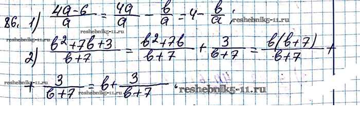 Готовая домашняя работа с ответами по Алгебре за 8 класс Мерзляк, Полонский, Якир Учебник Алгоритм успеха Вентана-граф 2016 ФГОС - §3. Сложение и вычитание рациональных дробей с одинаковыми знаменателями 86