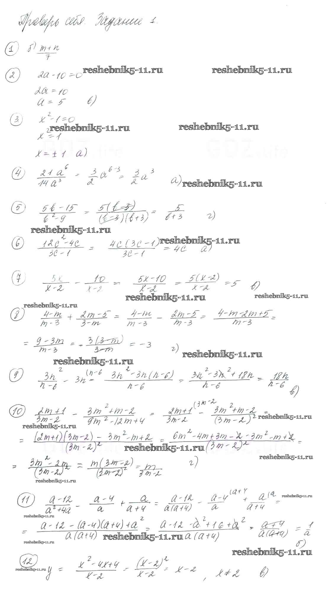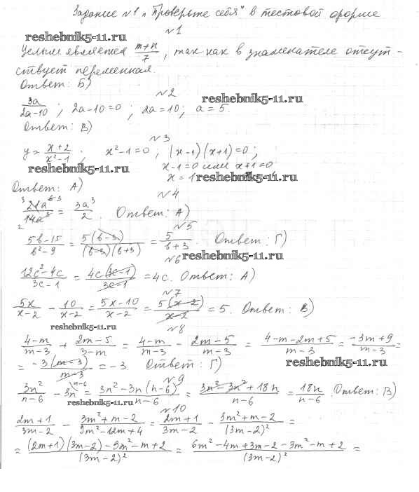 Готовая домашняя работа с ответами по Алгебре за 8 класс Мерзляк, Полонский, Якир Учебник Алгоритм успеха Вентана-граф 2016 ФГОС - Проверь себя №1 1