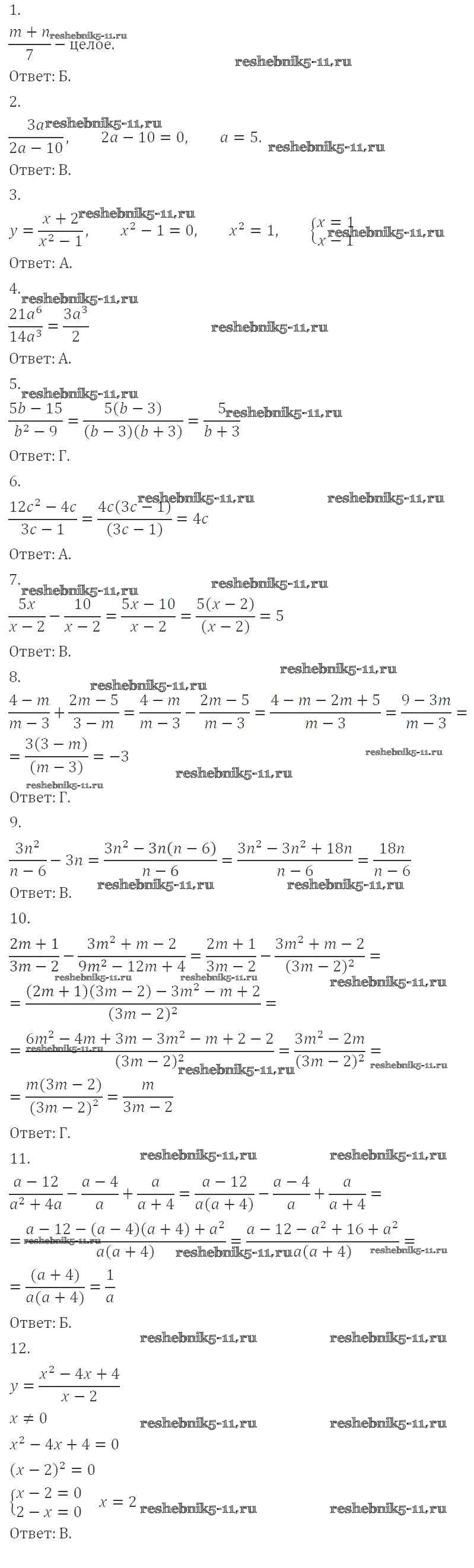 §3. Сложение и вычитание рациональных дробей с одинаковыми знаменателями