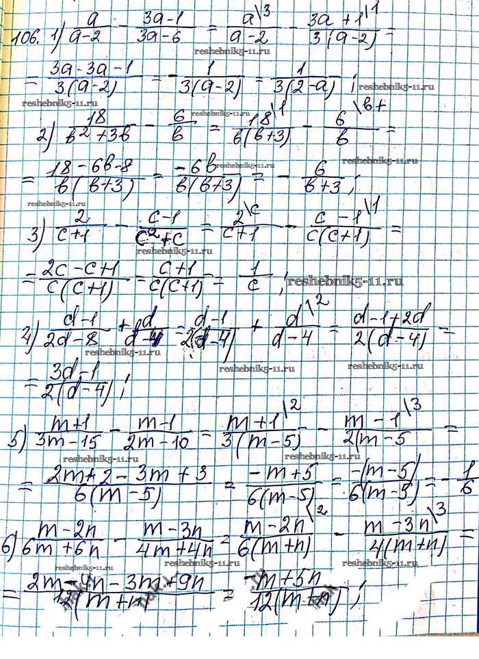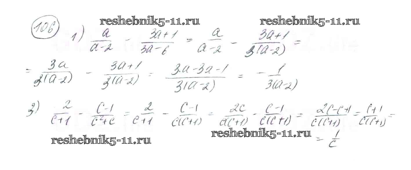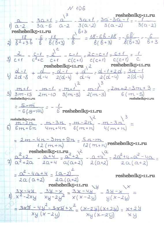 Готовая домашняя работа с ответами по Алгебре за 8 класс Мерзляк, Полонский, Якир Учебник Алгоритм успеха Вентана-граф 2016 ФГОС - §4. Сложение и вычитание рациональных дробей с разными знаменателями 106