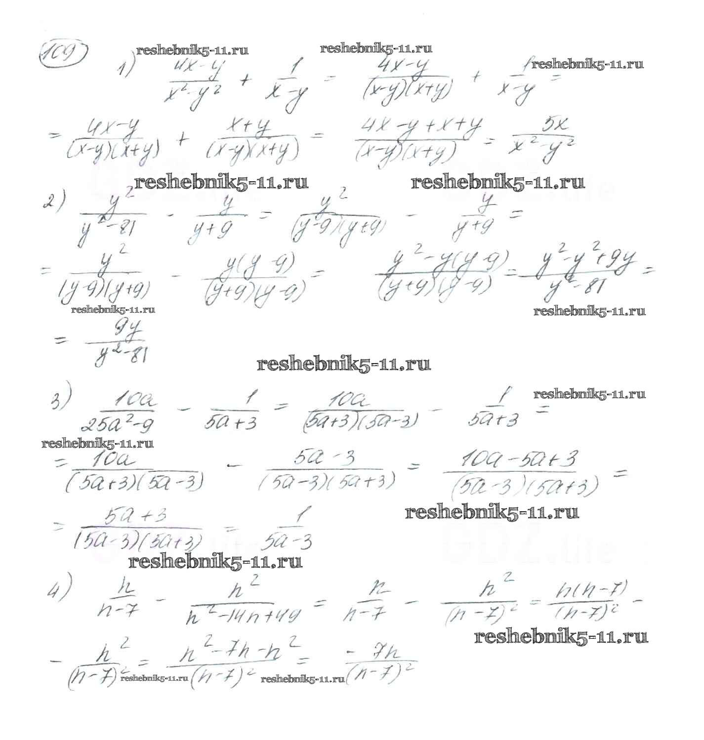 Готовая домашняя работа с ответами по Алгебре за 8 класс Мерзляк, Полонский, Якир Учебник Алгоритм успеха Вентана-граф 2016 ФГОС - §4. Сложение и вычитание рациональных дробей с разными знаменателями 109