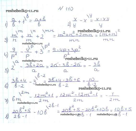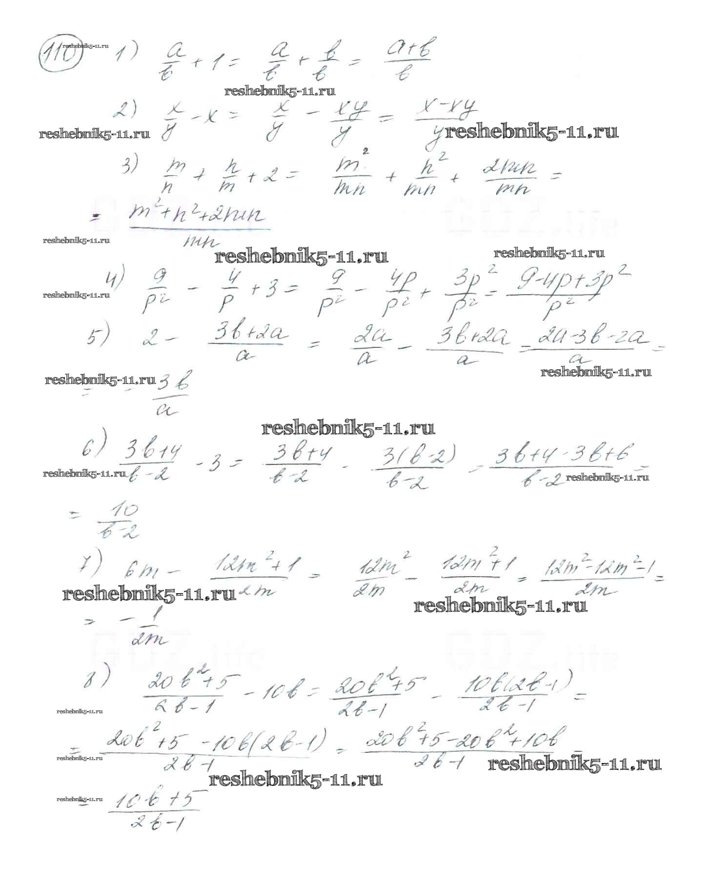 Готовая домашняя работа с ответами по Алгебре за 8 класс Мерзляк, Полонский, Якир Учебник Алгоритм успеха Вентана-граф 2016 ФГОС - §4. Сложение и вычитание рациональных дробей с разными знаменателями 110