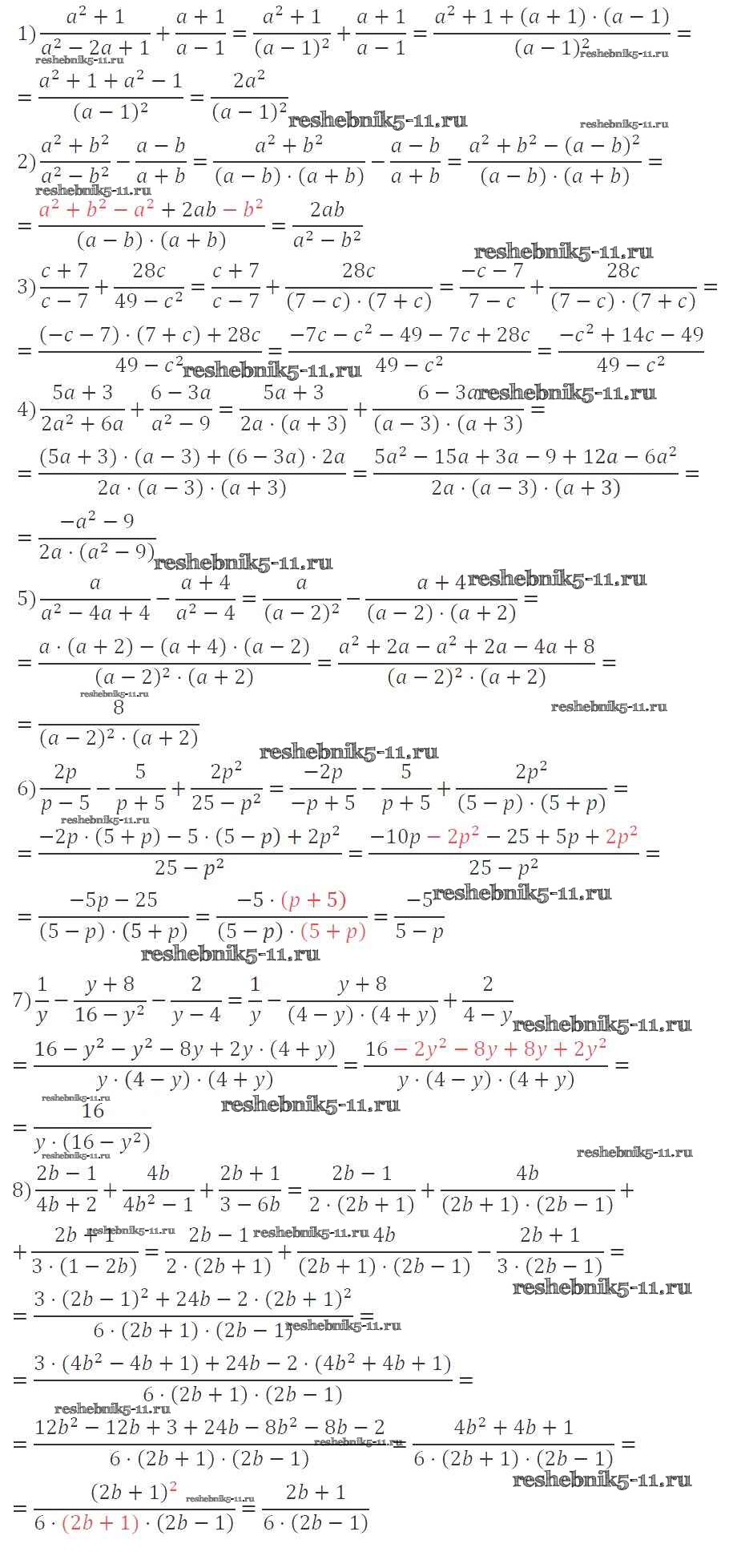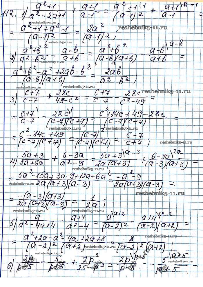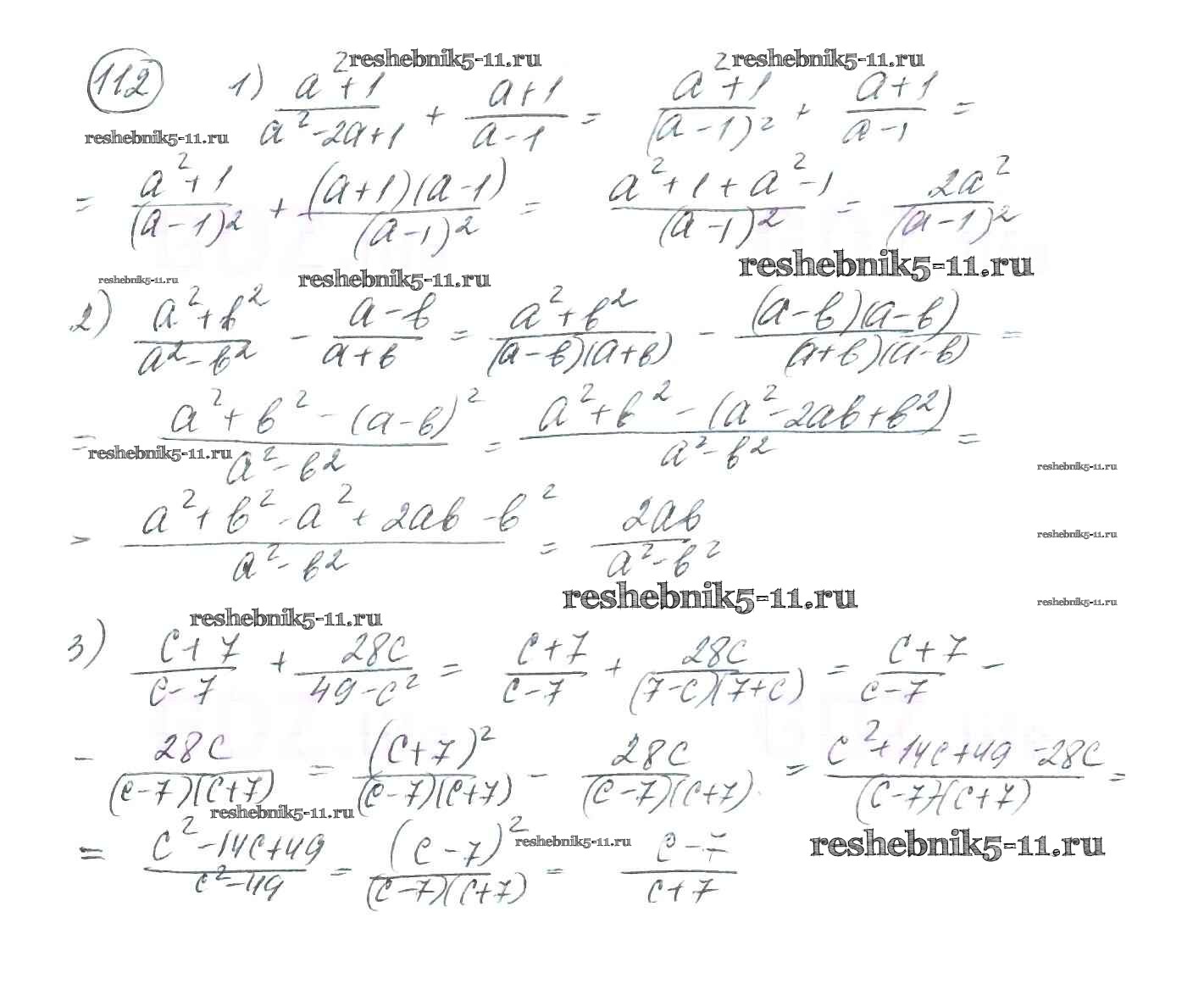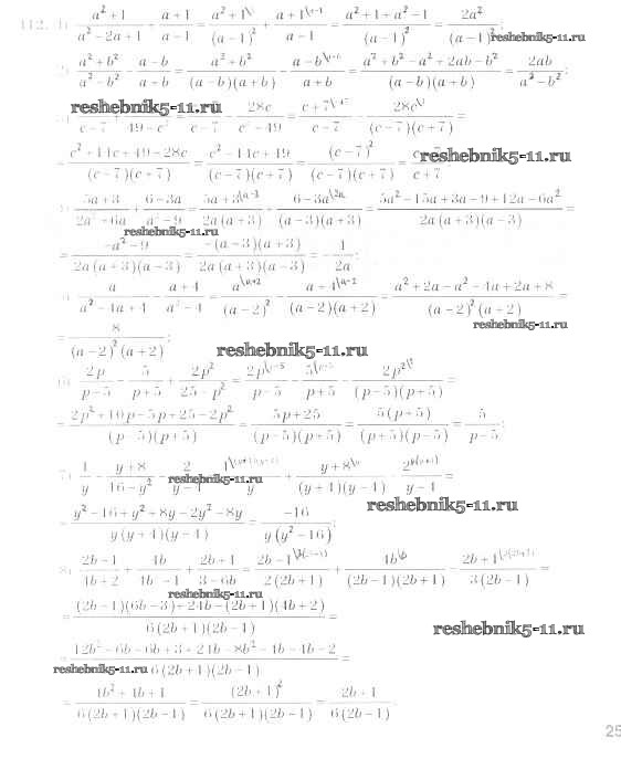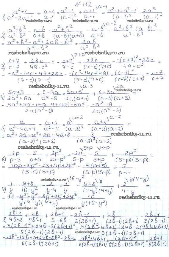 Готовая домашняя работа с ответами по Алгебре за 8 класс Мерзляк, Полонский, Якир Учебник Алгоритм успеха Вентана-граф 2016 ФГОС - §4. Сложение и вычитание рациональных дробей с разными знаменателями 112