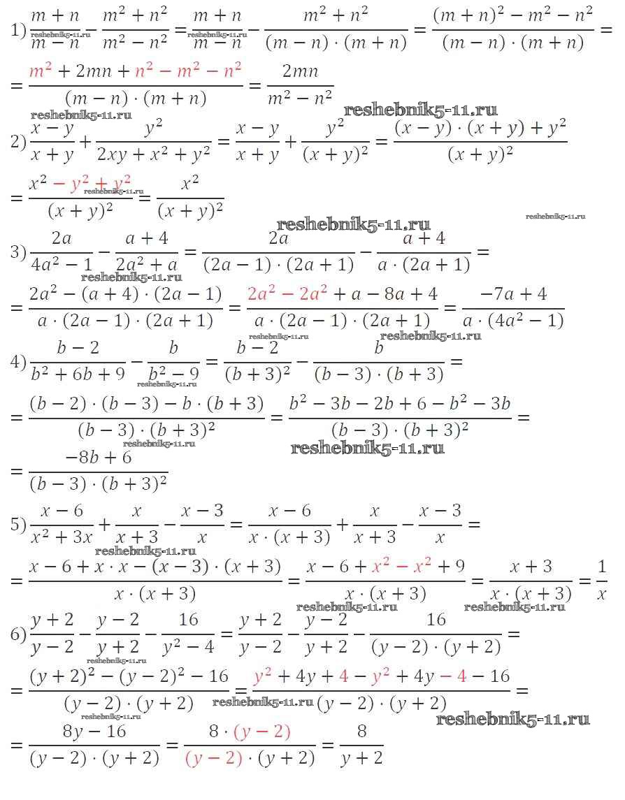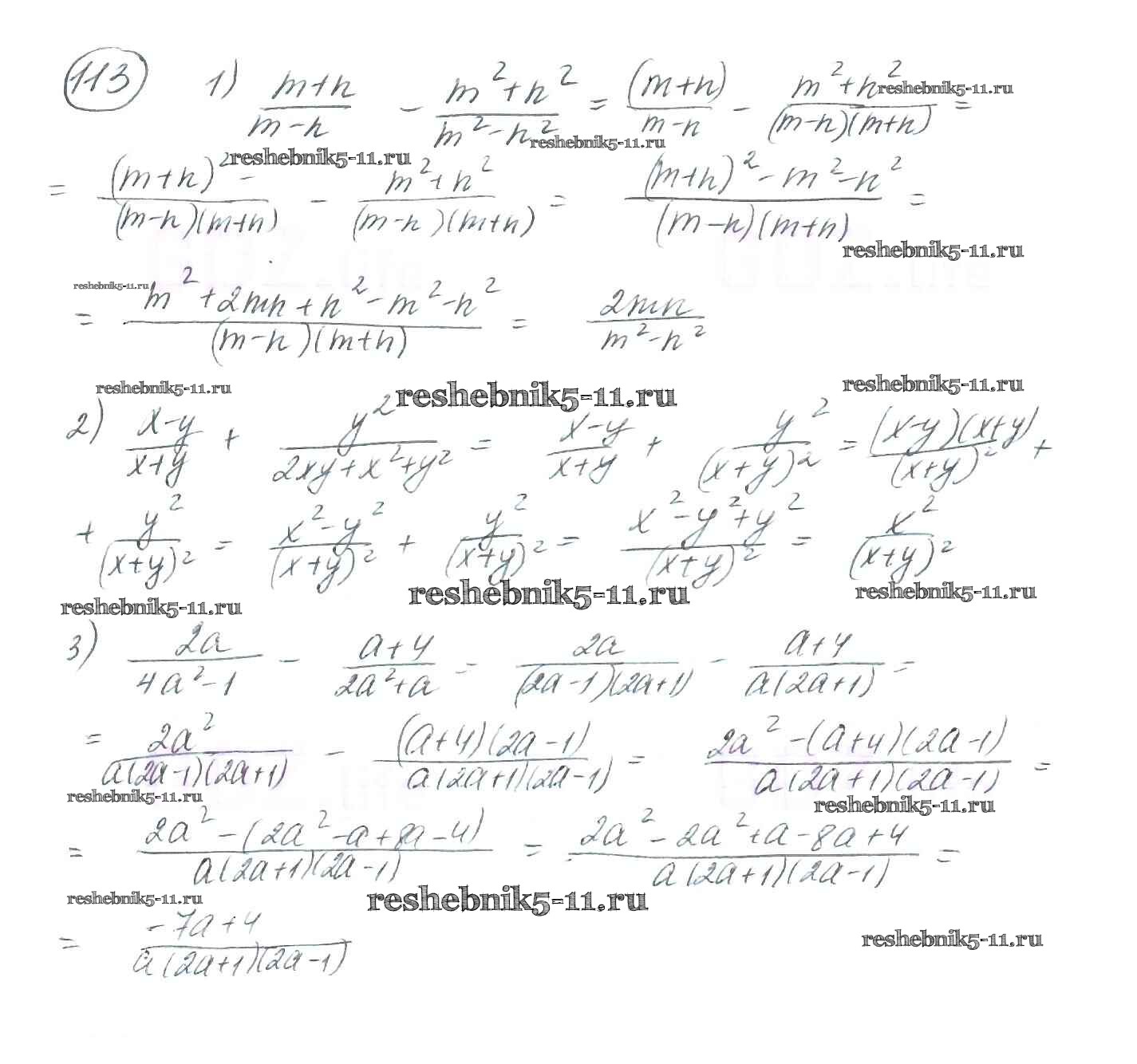 Готовая домашняя работа с ответами по Алгебре за 8 класс Мерзляк, Полонский, Якир Учебник Алгоритм успеха Вентана-граф 2016 ФГОС - §4. Сложение и вычитание рациональных дробей с разными знаменателями 113