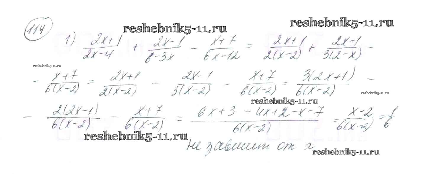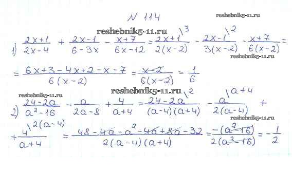 Готовая домашняя работа с ответами по Алгебре за 8 класс Мерзляк, Полонский, Якир Учебник Алгоритм успеха Вентана-граф 2016 ФГОС - §4. Сложение и вычитание рациональных дробей с разными знаменателями 114