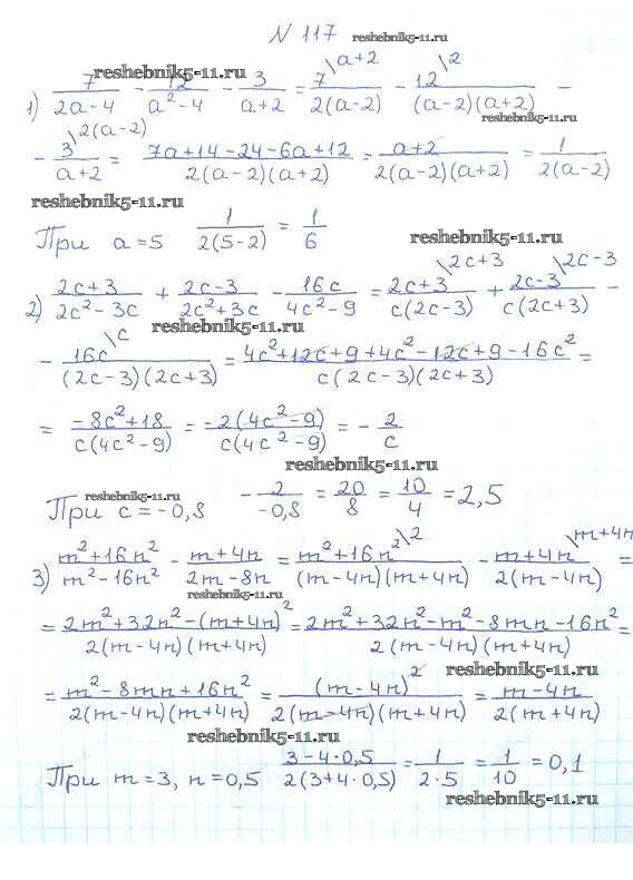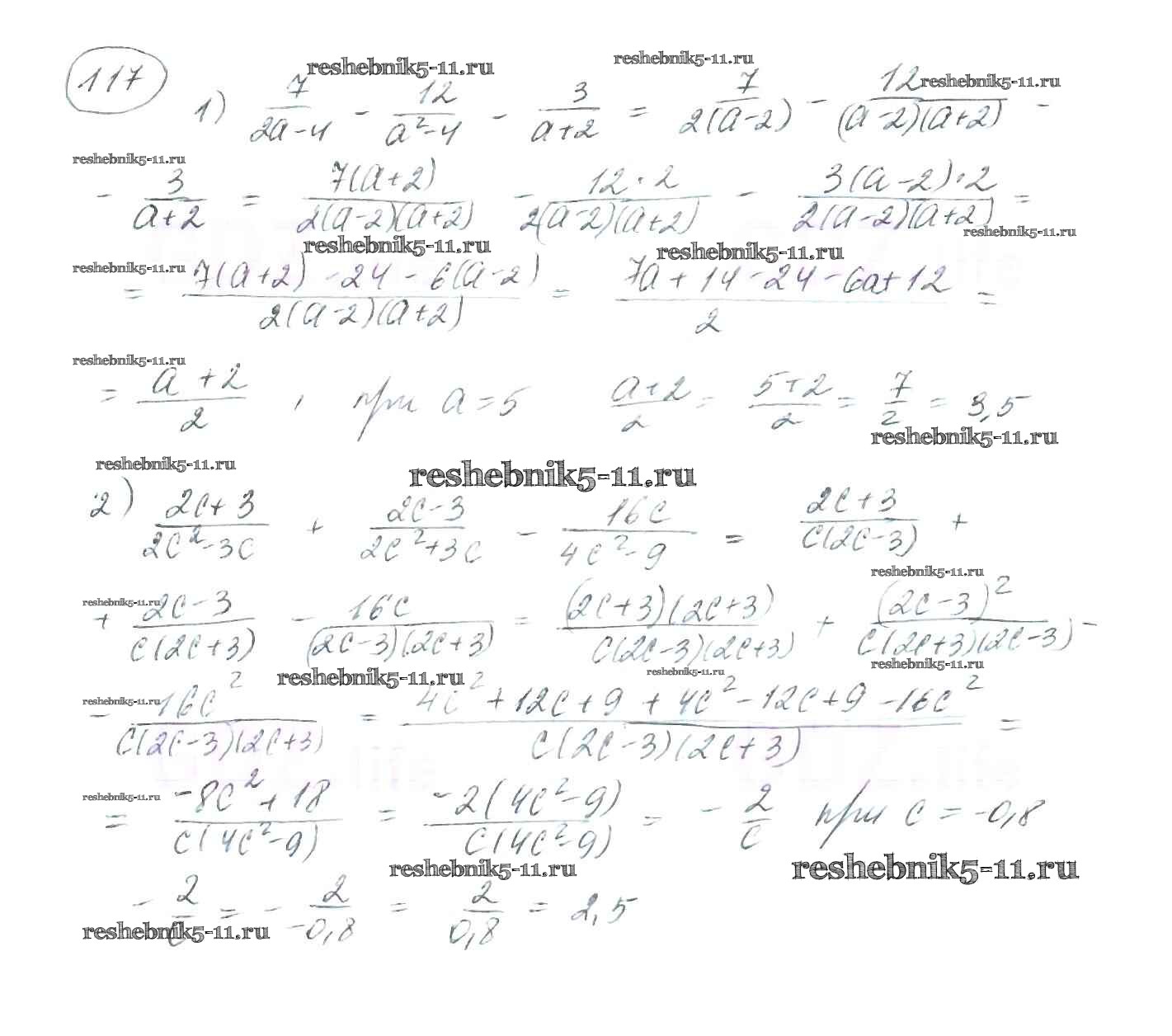 Готовая домашняя работа с ответами по Алгебре за 8 класс Мерзляк, Полонский, Якир Учебник Алгоритм успеха Вентана-граф 2016 ФГОС - §4. Сложение и вычитание рациональных дробей с разными знаменателями 117
