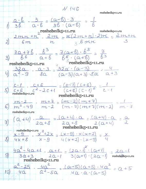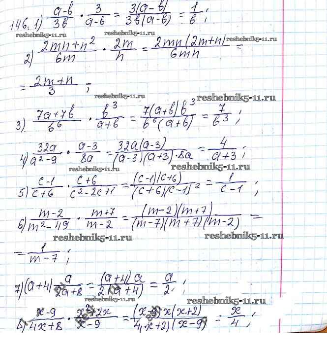 Готовая домашняя работа с ответами по Алгебре за 8 класс Мерзляк, Полонский, Якир Учебник Алгоритм успеха Вентана-граф 2016 ФГОС - §5. Умножение и деление рациональных дробей. Возведение рациональной дроби в степень 146