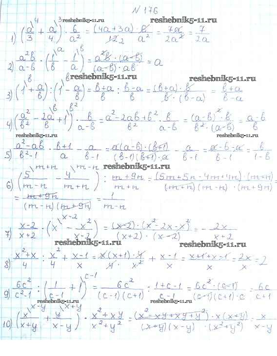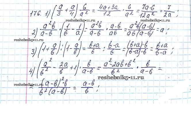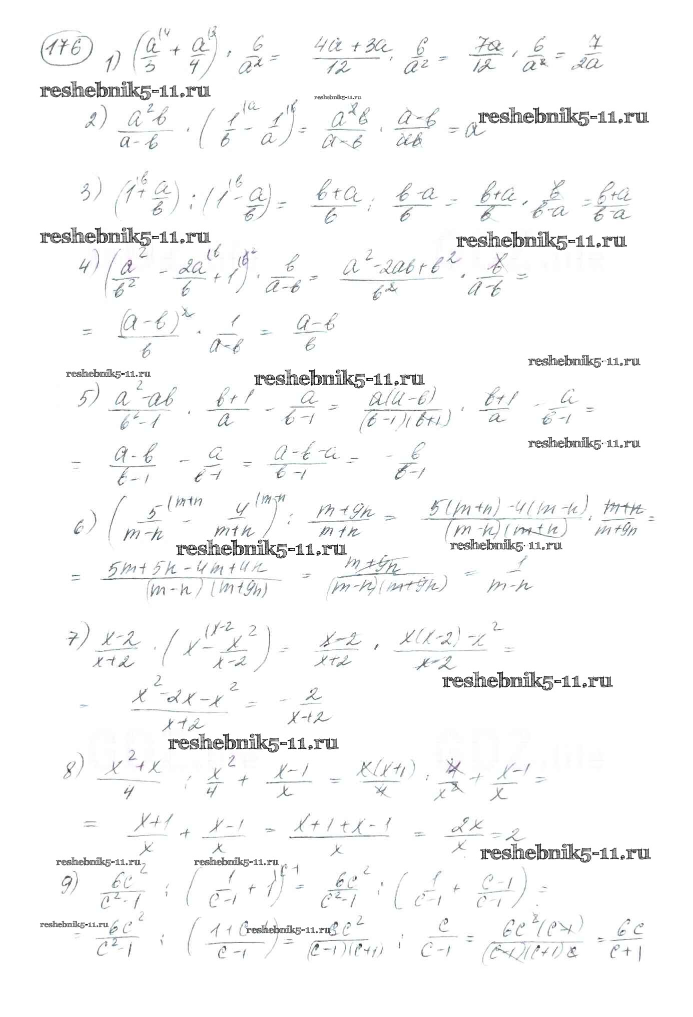 Готовая домашняя работа с ответами по Алгебре за 8 класс Мерзляк, Полонский, Якир Учебник Алгоритм успеха Вентана-граф 2016 ФГОС - §6. Тождественные преобразования рациональных выражений 176