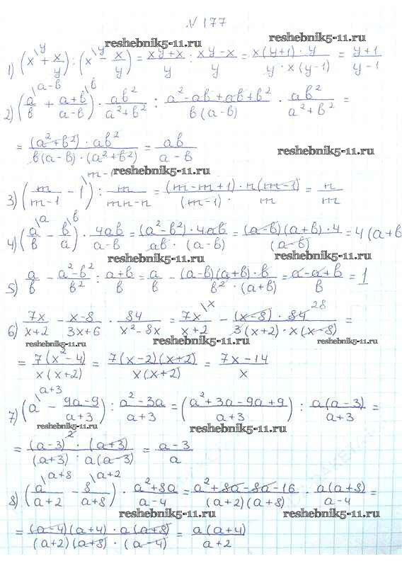 Готовая домашняя работа с ответами по Алгебре за 8 класс Мерзляк, Полонский, Якир Учебник Алгоритм успеха Вентана-граф 2016 ФГОС - §6. Тождественные преобразования рациональных выражений 177