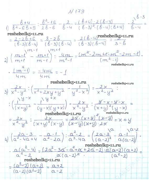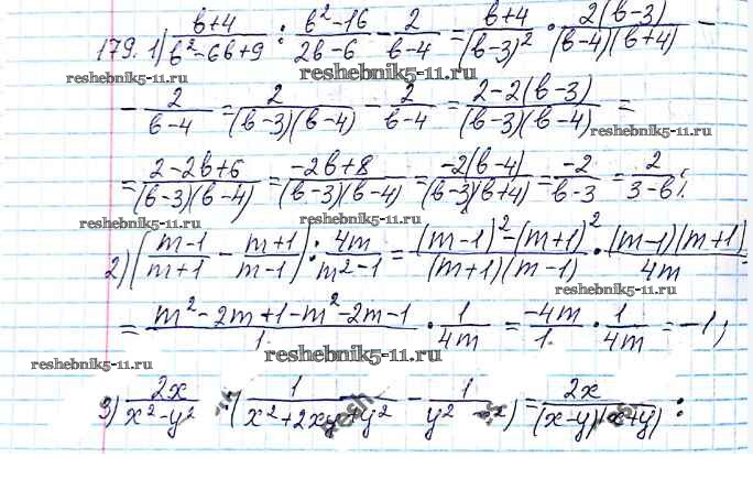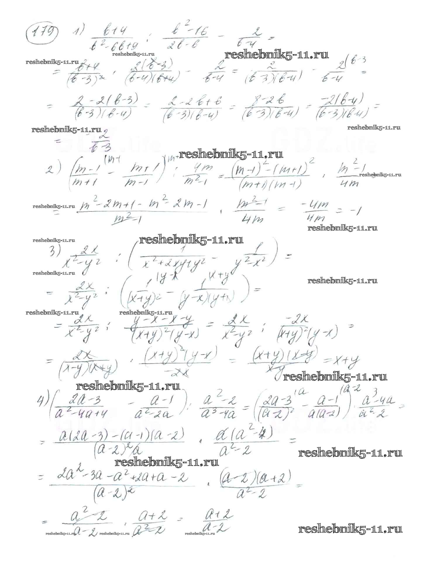 Готовая домашняя работа с ответами по Алгебре за 8 класс Мерзляк, Полонский, Якир Учебник Алгоритм успеха Вентана-граф 2016 ФГОС - §6. Тождественные преобразования рациональных выражений 179