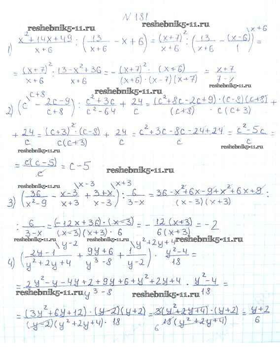 Готовая домашняя работа с ответами по Алгебре за 8 класс Мерзляк, Полонский, Якир Учебник Алгоритм успеха Вентана-граф 2016 ФГОС - §6. Тождественные преобразования рациональных выражений 181